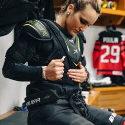 Stay comfortable on the ice with a compression fit. Strategic mesh inserts add ventilation for breathability.